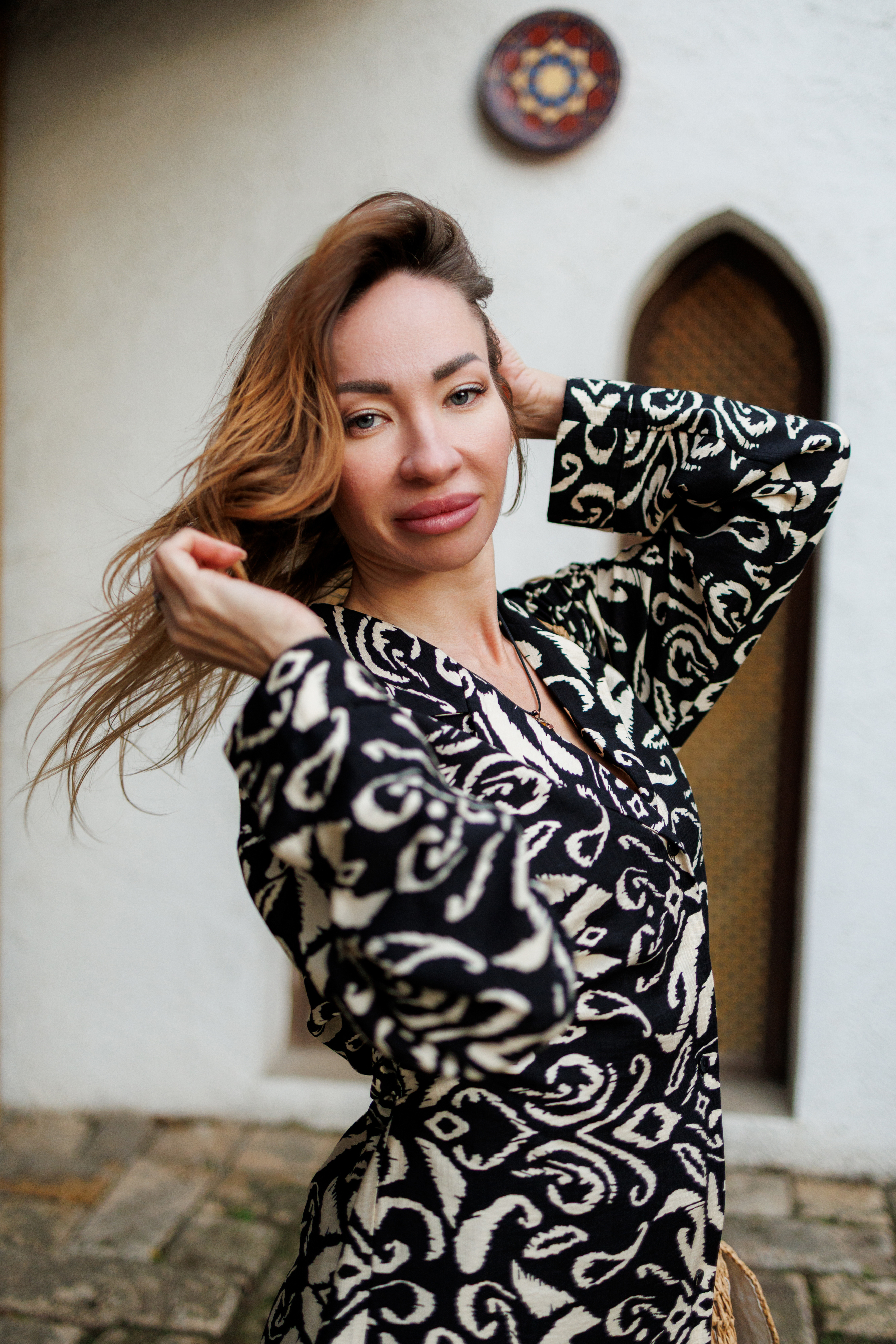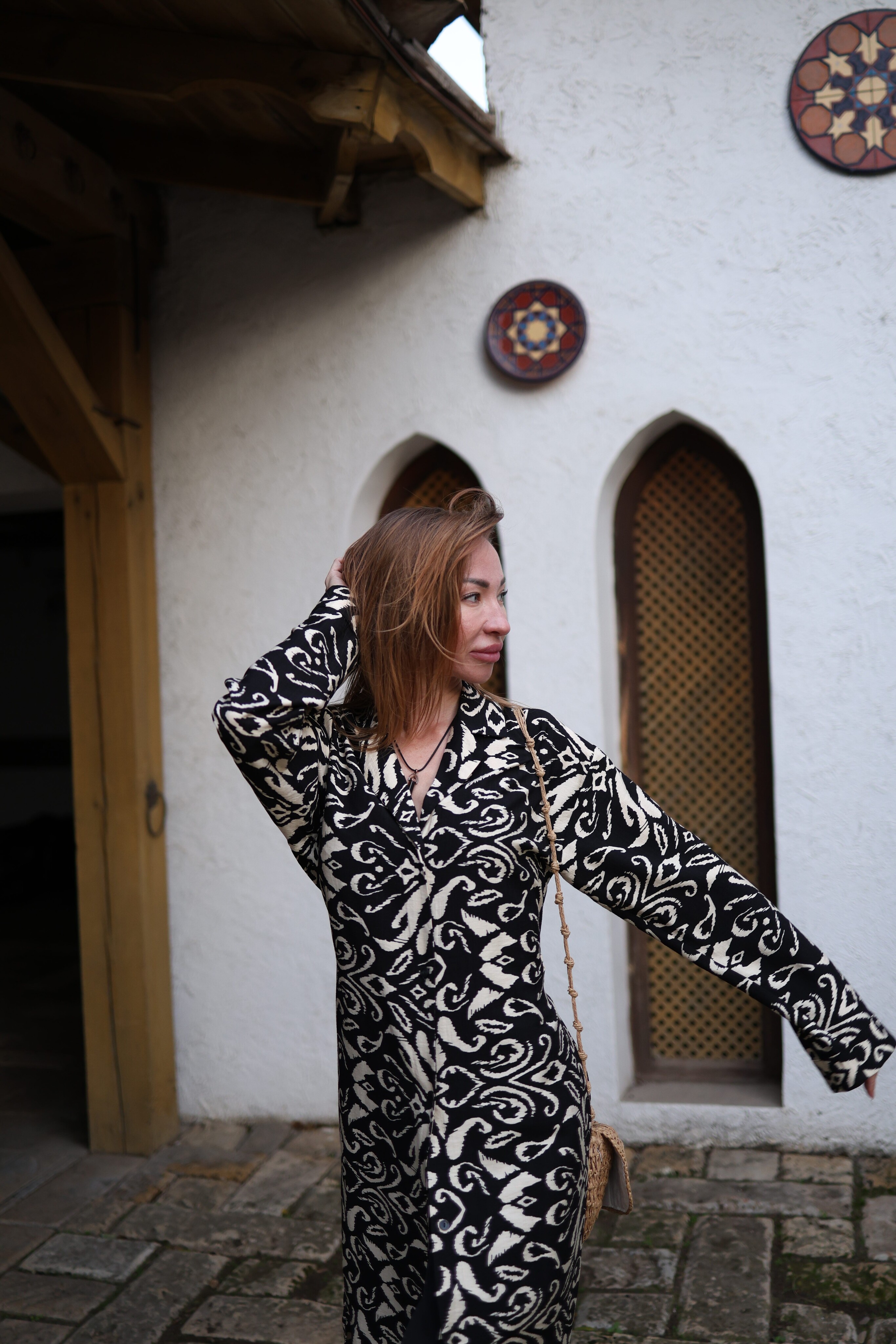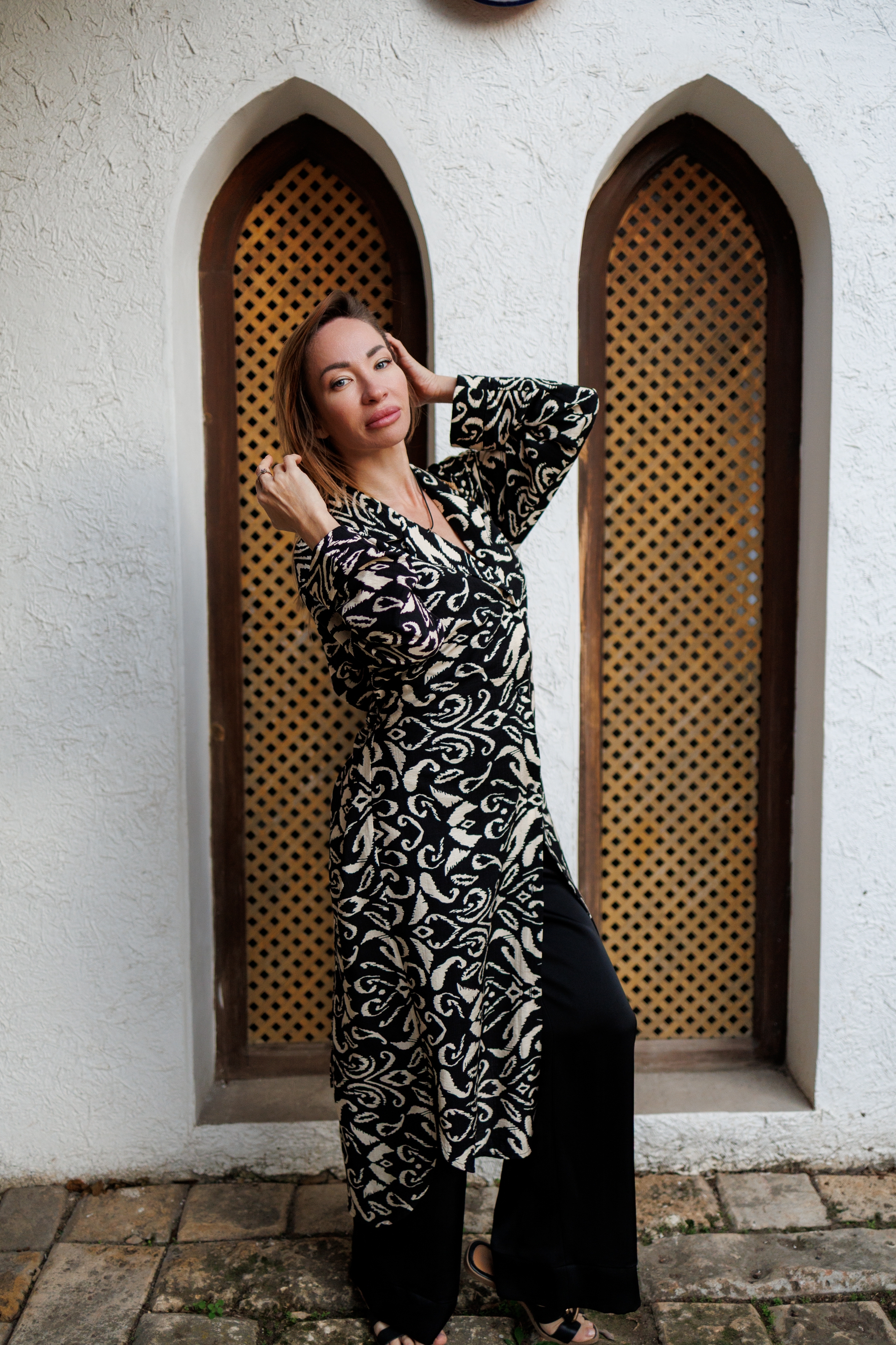 Рубашка "Черно-бежевый принт"